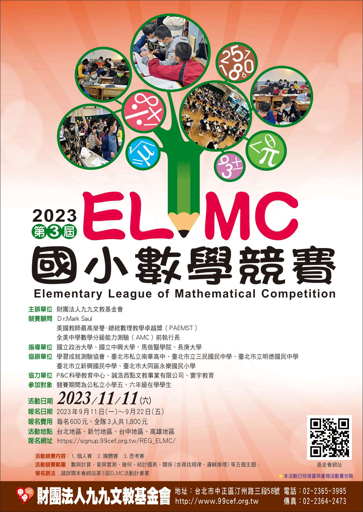 九九文教基金會訂於112年11月11日(星期六)舉辦第三屆ELMC國小數學競賽