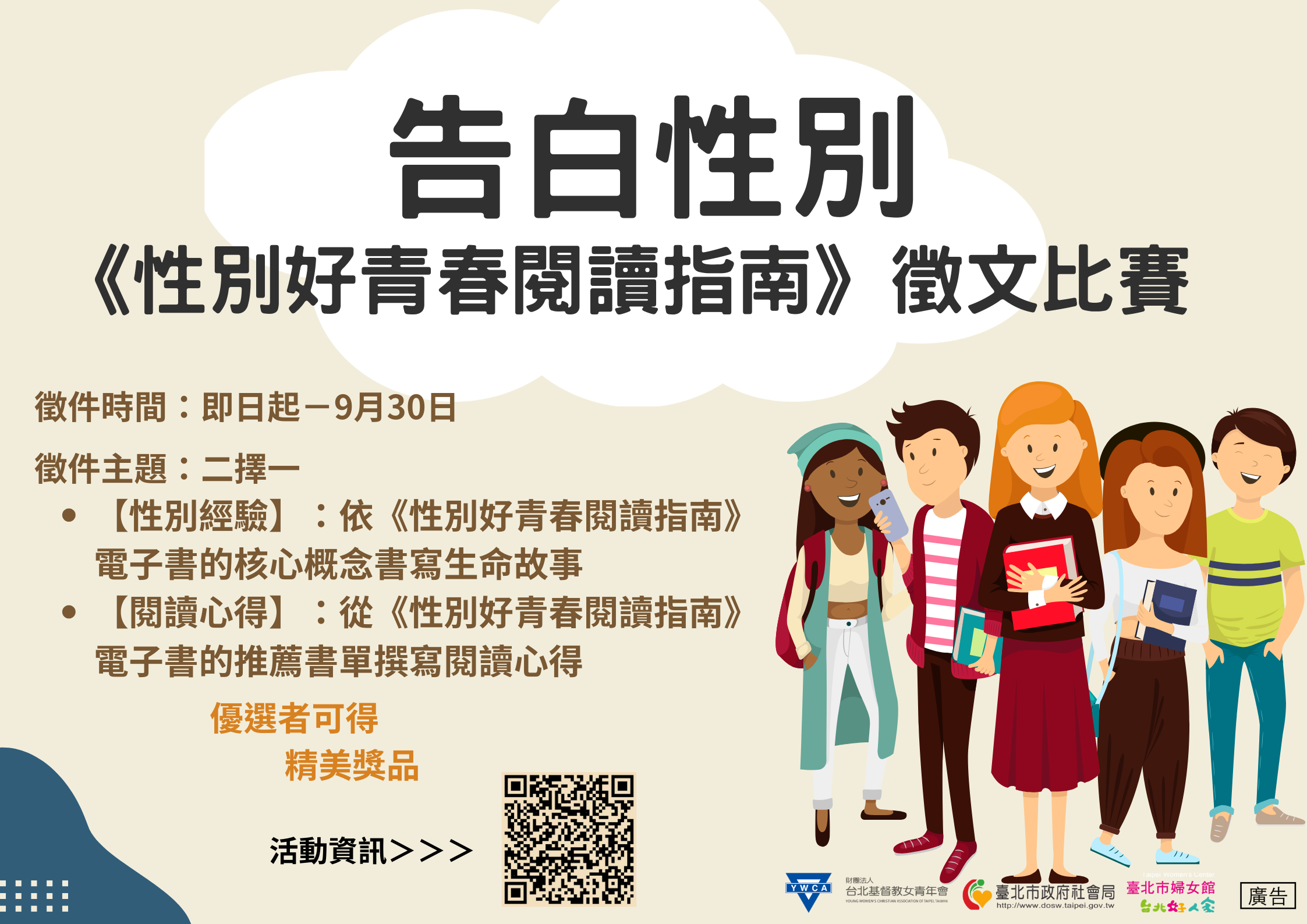 臺北市政府社會局委託台北基督教女青年會經營管理臺北市婦女館,本計畫的目的係根據臺北市婦女館111年制訂的性別平等教材《性別好青春閱讀指南》辦理徵文比賽,邀請青少年、大專院校學生以及一般大眾,述說性別經驗或閱讀心得。