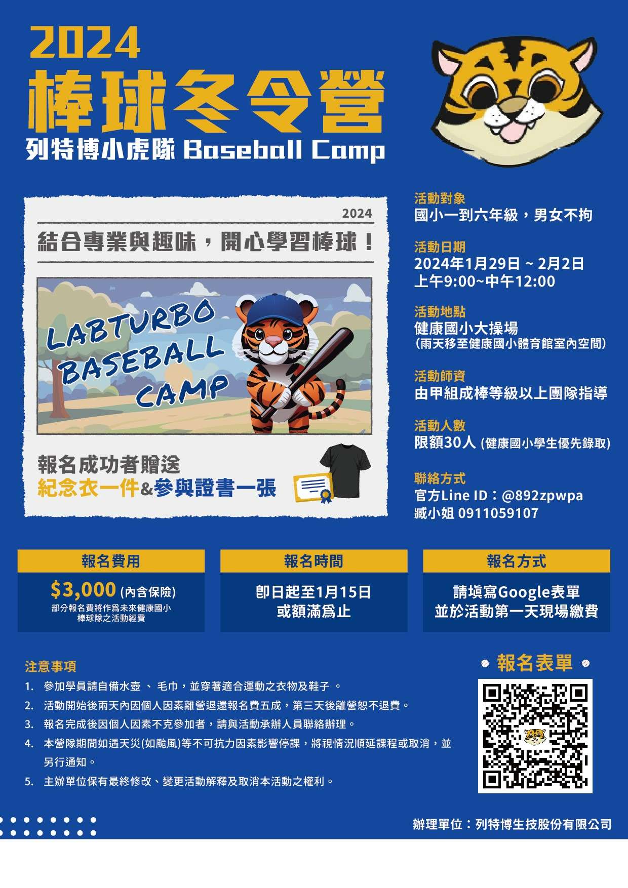部分報名費將作為未來健康國小棒球隊之活動經費